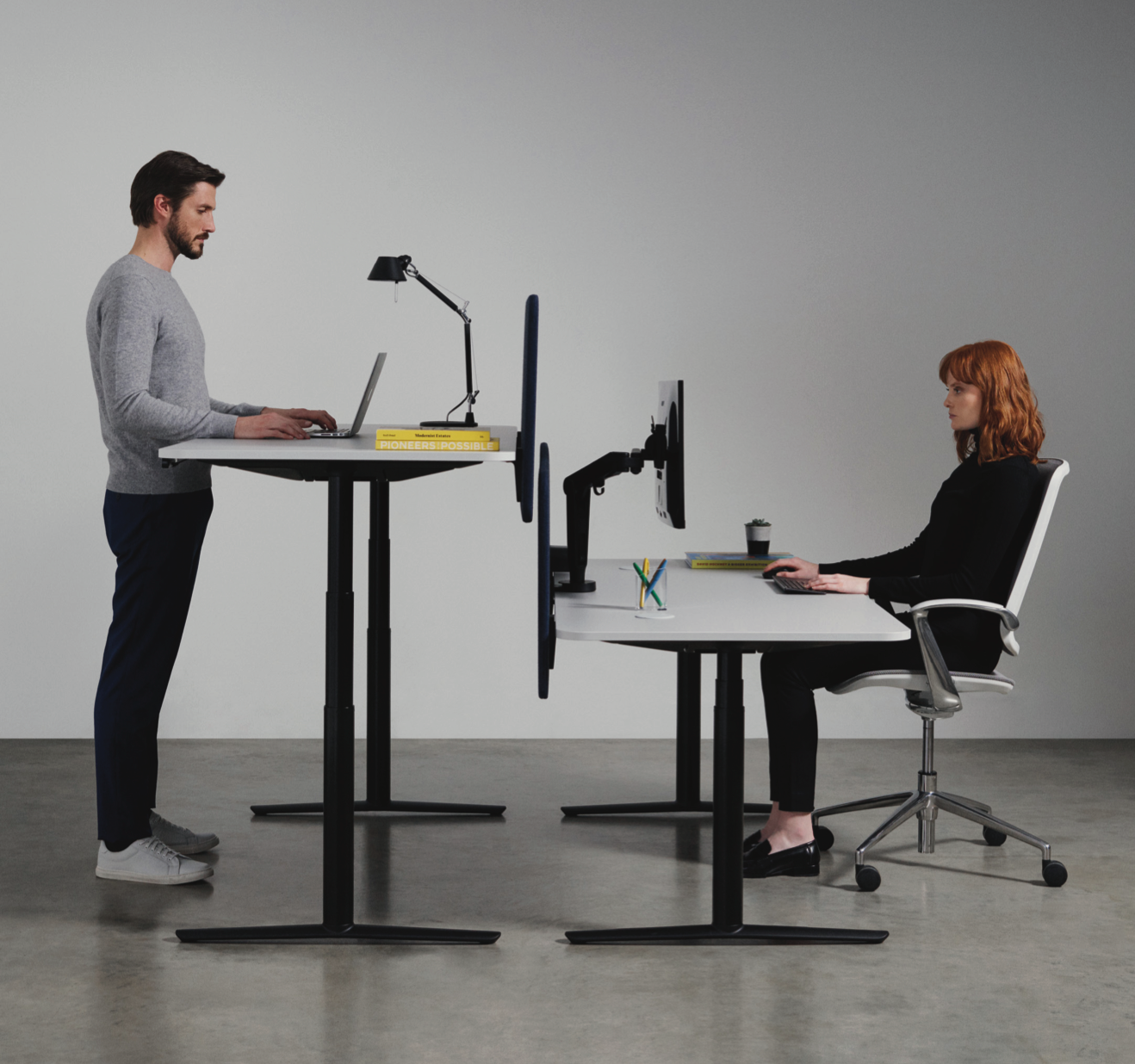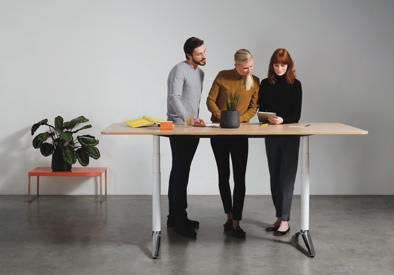 Height Adjustable Desk & Meeting/Collaboration Table. From sit-stand desking to height adjustable and static meeting tables, ACDC delivers benefits for the human body whilst promoting better working practice. In today’s flexible and adaptive workspace, ACDC can be used to promote shorter standing group meetings with the ability to transform for individual, desk-focused work.