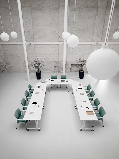 In today’s fast-paced world multi-use spaces have become common. People work, meet and collaborate all in the same location. Array has been designed with this in mind. Whether you’re conferencing or training, Array is adaptable so you can think, learn and work with ease. Array is available in four additional top shapes; Trapezoid, Crescent, Polygon and Half Round. In addition to this, three Quadrants are also available that seamlessly clip onto any rectangular Array mobile tables. Whatever your requirements Array can easily adapt to your needs.