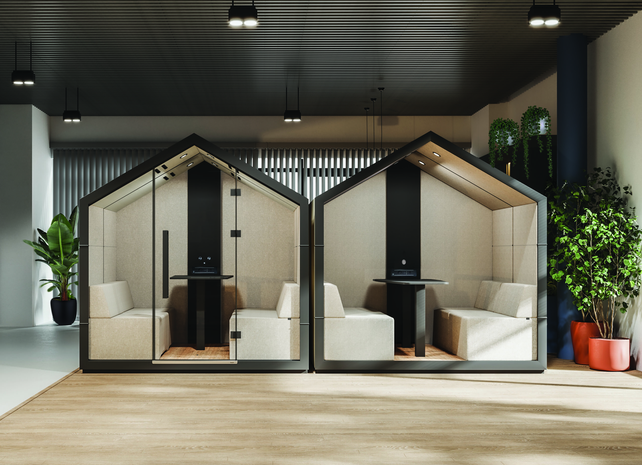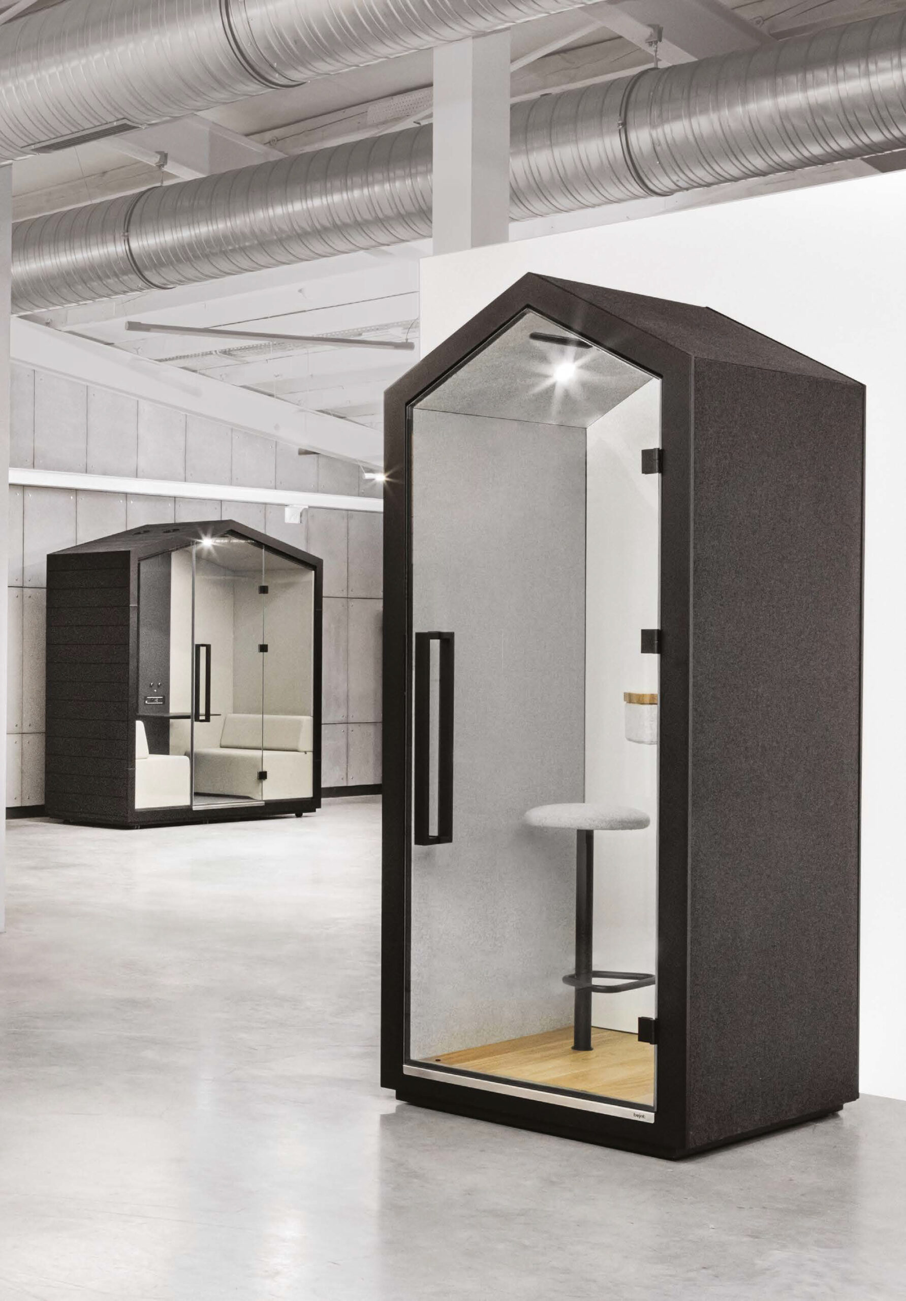 The Bejot Treehouse collection comes as one, two and four person acoustic booths. These were created to provide a space in a noisy office or crowded public space that enables the user or users to work in a focused manner.