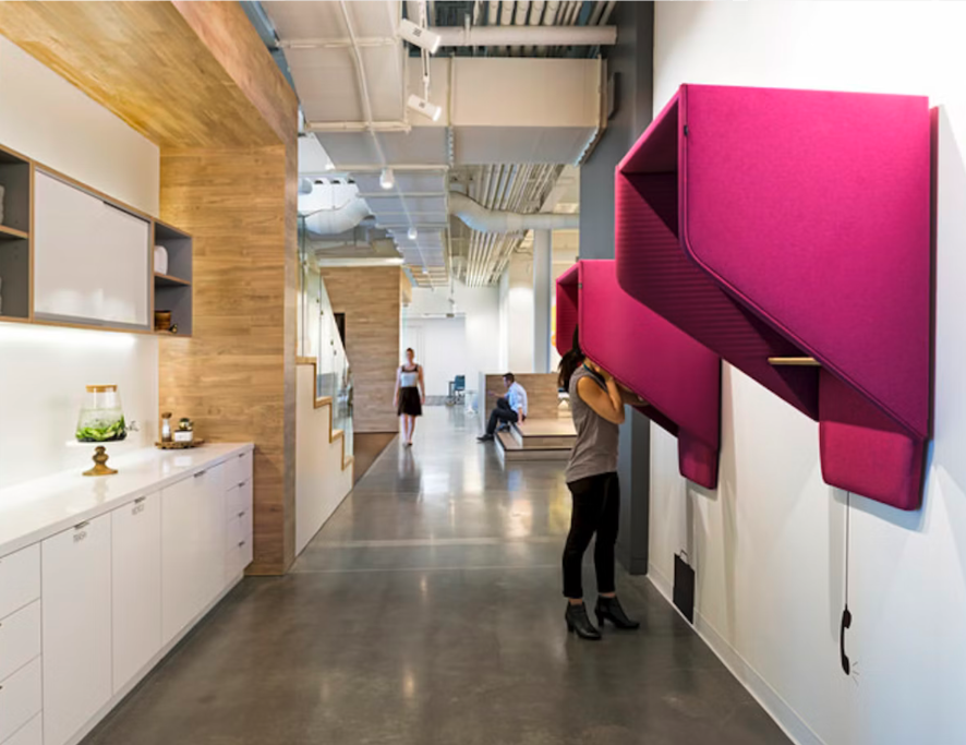 BuzziHood is a sound absorbing telephone booth that attaches to any vertical wall