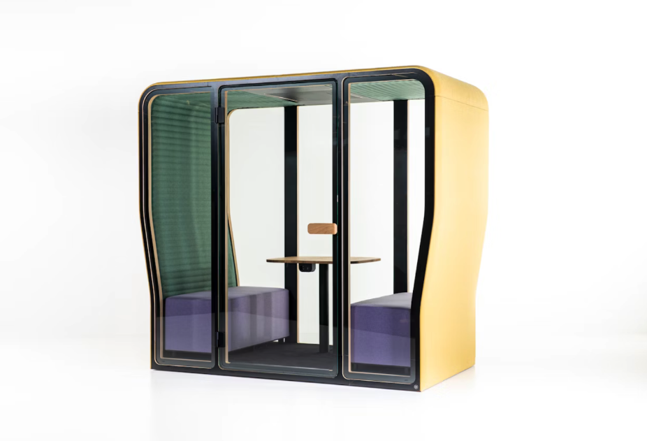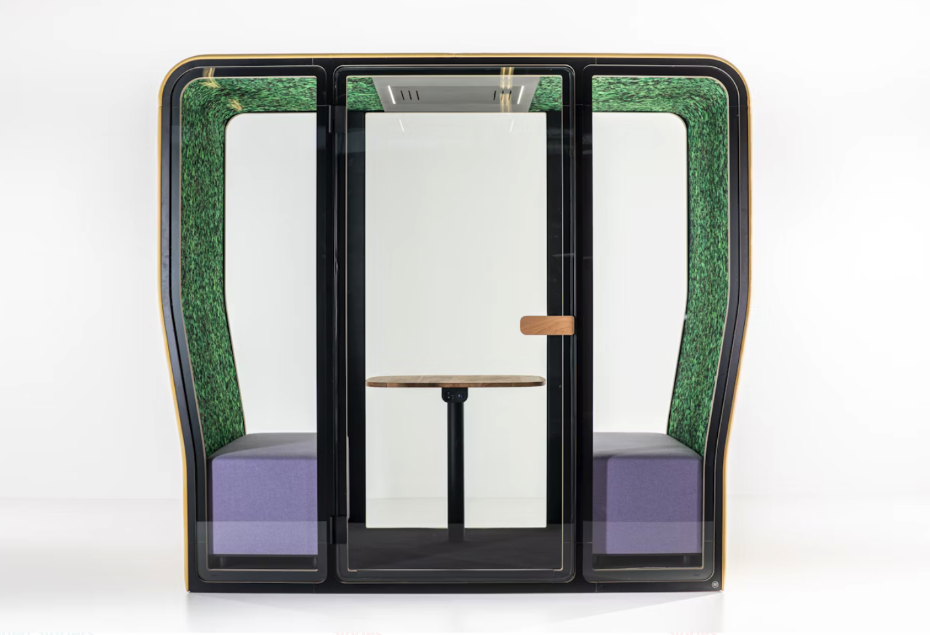 BuzziNest Pod is all you need to erase distractive noise from any workplace. The compact acoustic privacy booth offers a private space to work and take calls, and can additionally accommodate up to four people to hold face- to-face meetings and collaborations in any open space without disturbing others, and most importantly, being disturbed. Due to its upholstered exterior and fabric panels on the interior, BuzziNest Pod effectively dampens sound from every direction to create maximum peace and quiet for everyone in the office, whether you are working inside BuzziNest Pod or out.