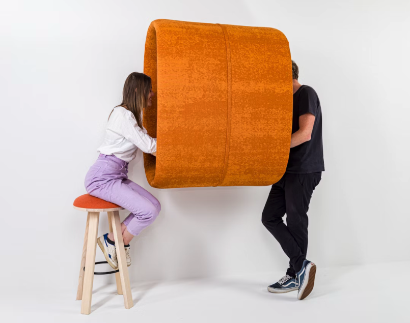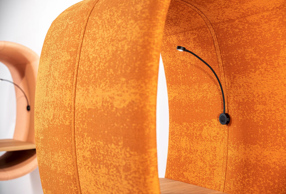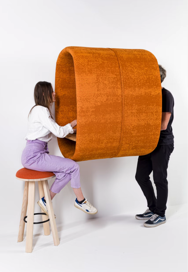 BuzziRing is the smallest wall mounted work hub, with an upholstered-foam body absorbing sound both on the inside and the outsdie, a very creative solution to any open plan office when you want to have a space to focus.