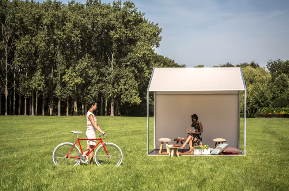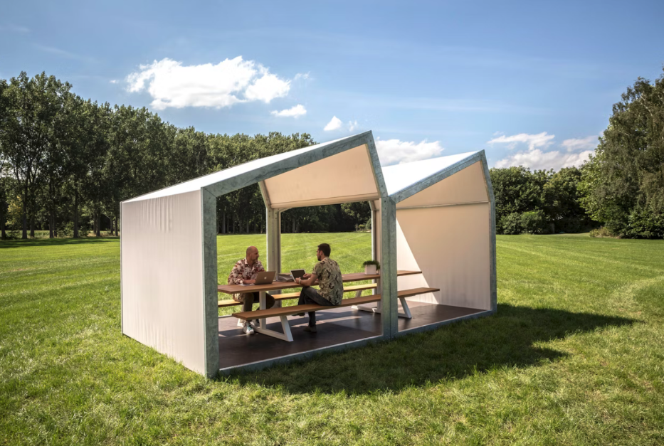 BuzziShed is an outdoor structure that provides shade and shelter, protected from the sun and even the rain. Provides a workplace outside!