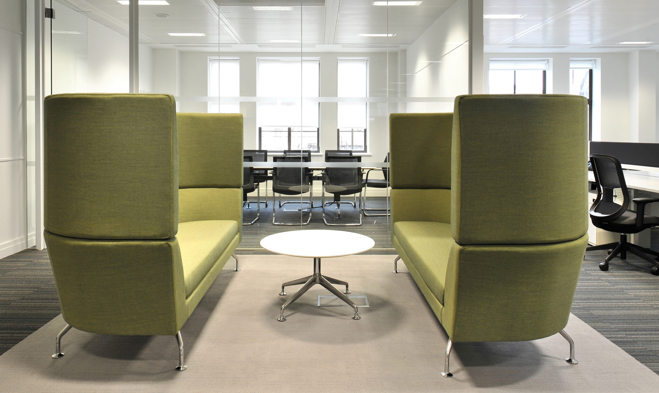 We required many design led Pods and Booths with strong DB rated acoustics for confidentiality and electronic height adjustable workstations with wireless desk top fast charge. Acoustic Office provided us with a selection of options matching our requirements, offering our clients choice. These were all delivered and installed within budget and on time."