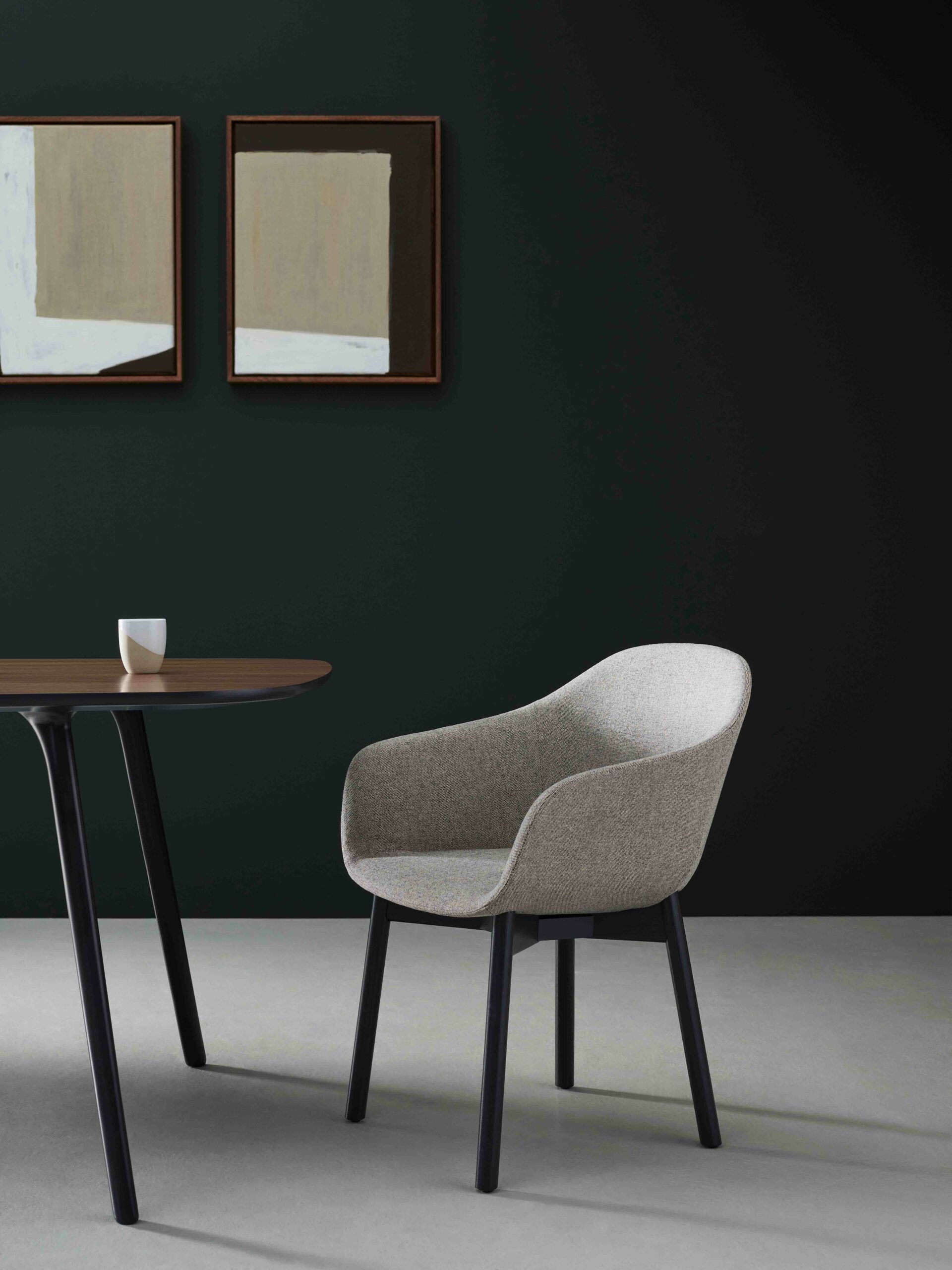 A simple, elegant tub chair that balances organic curves with a compact footprint.