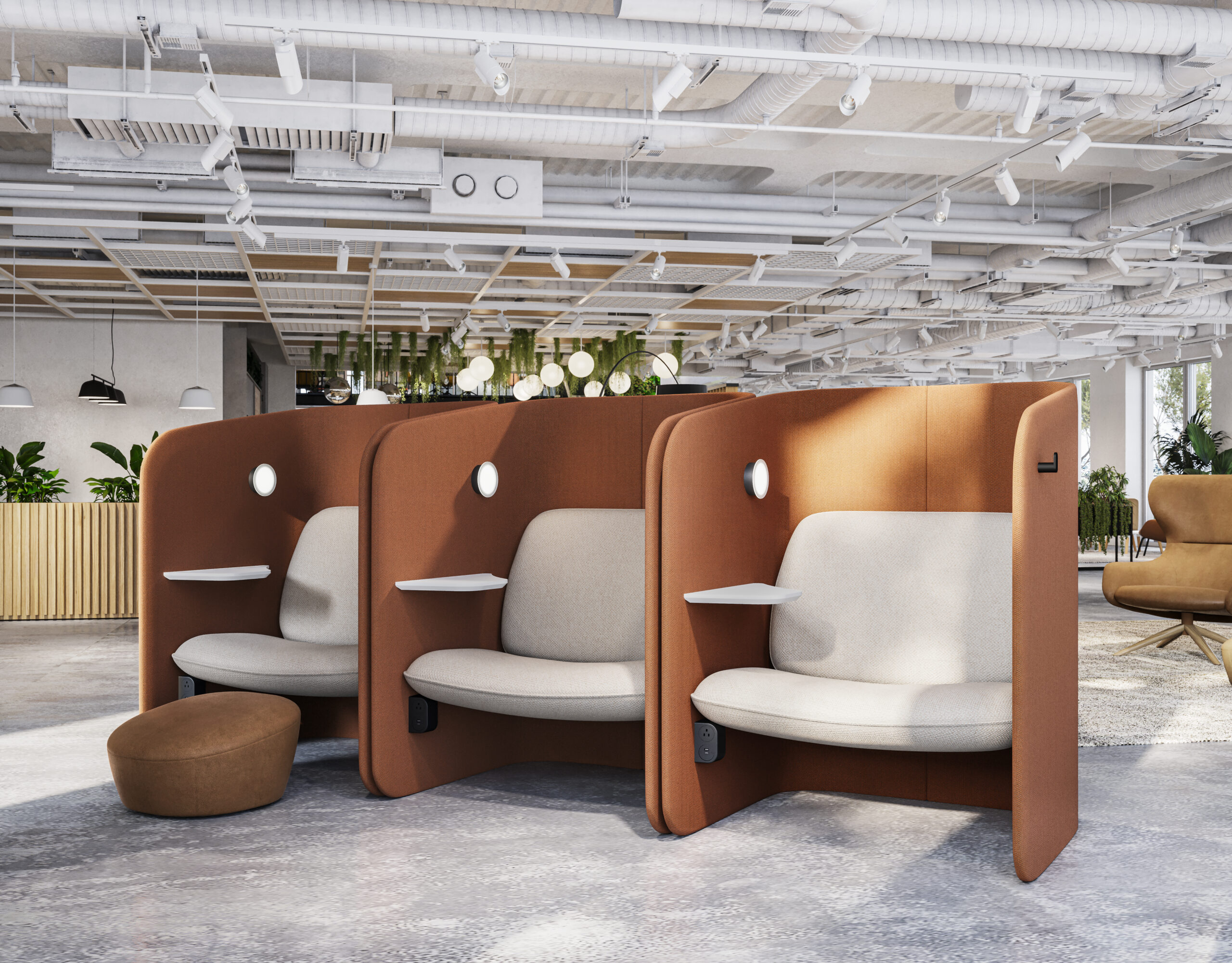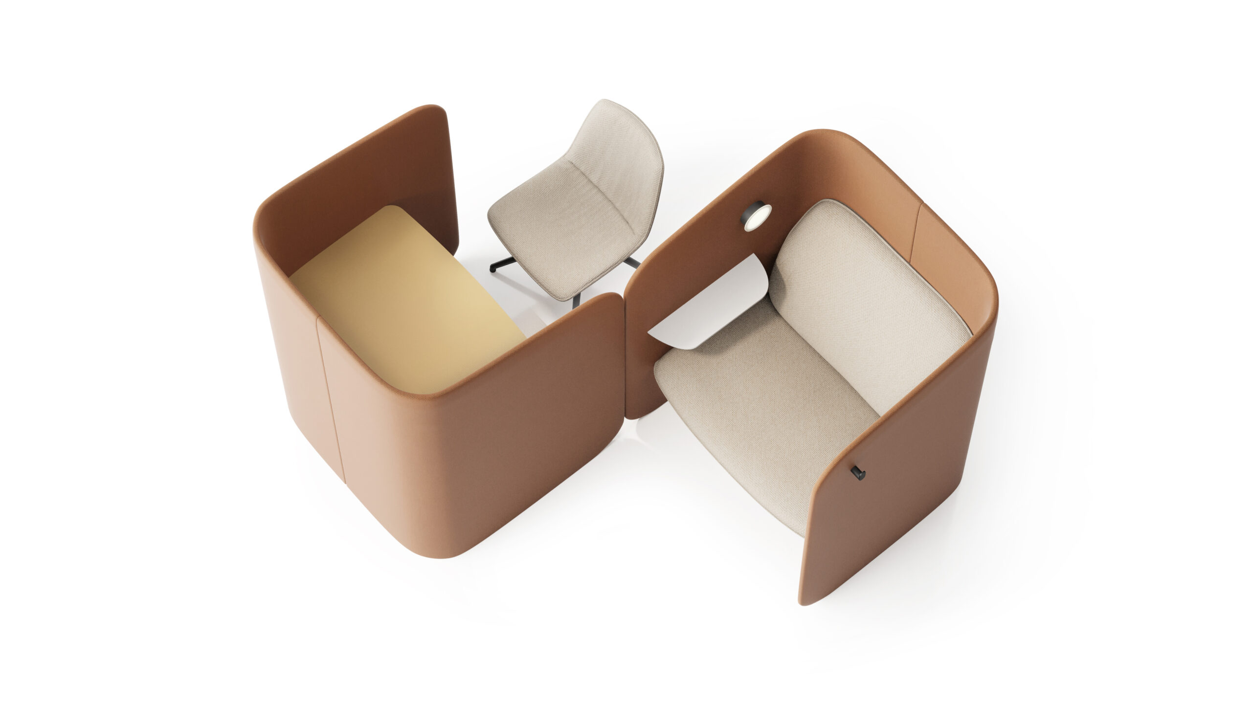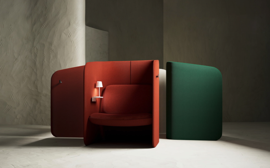 Frida, the focus pod that embraces, privacy, comfort and style. Its softness, elegance and form draw you in and creates an ideal space to reflect, read and rest, or simply take a moment.