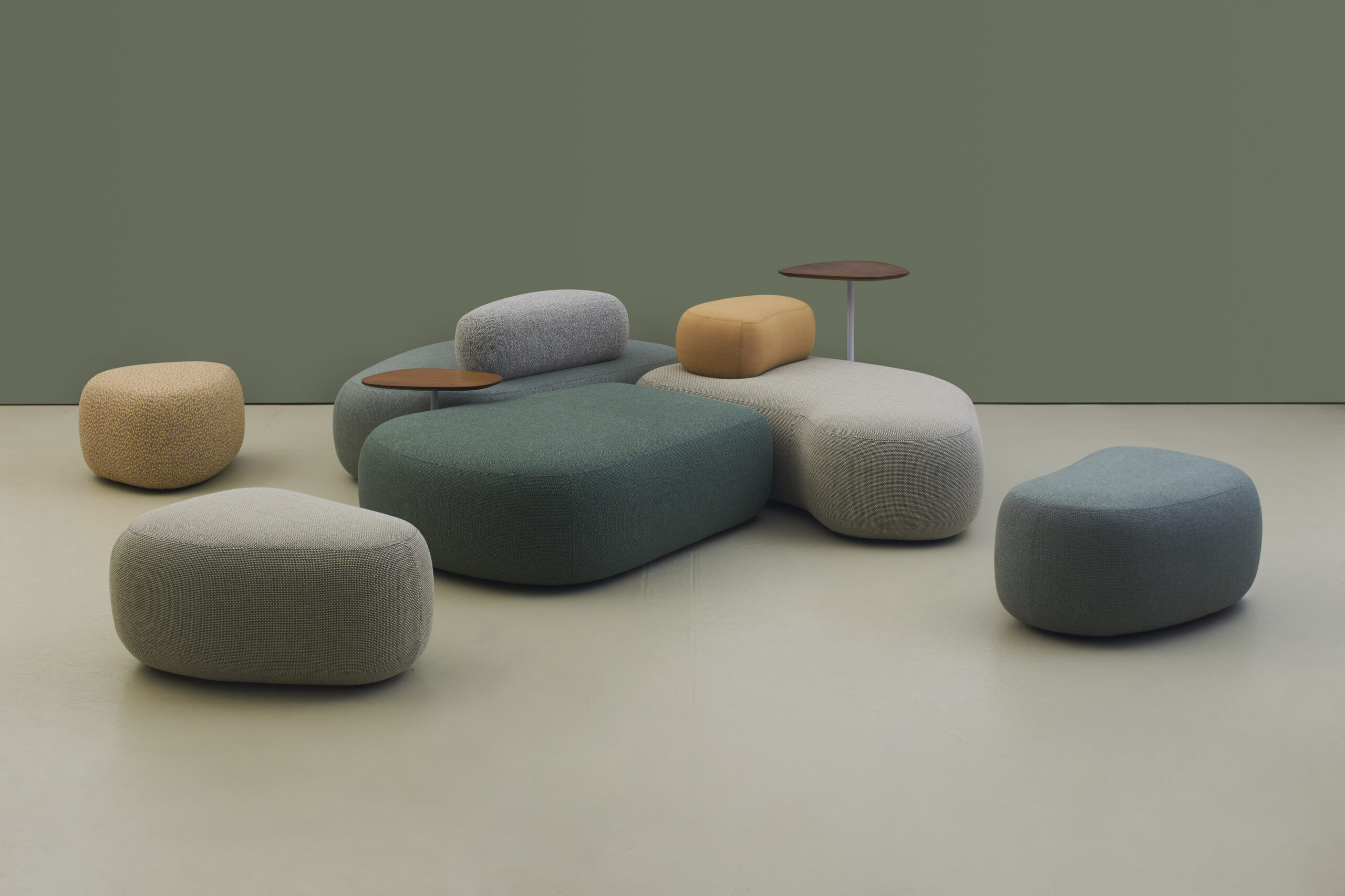 The low, pebble-like units of Nigel Coates' hm63 can be laid out in structured patterns, used either individually or scattered throughout a space to provide organic seating arrangements. The natural adaptability and versatility of hm63 Pebble is designed for modern living and working environments, and in both public and private spaces.