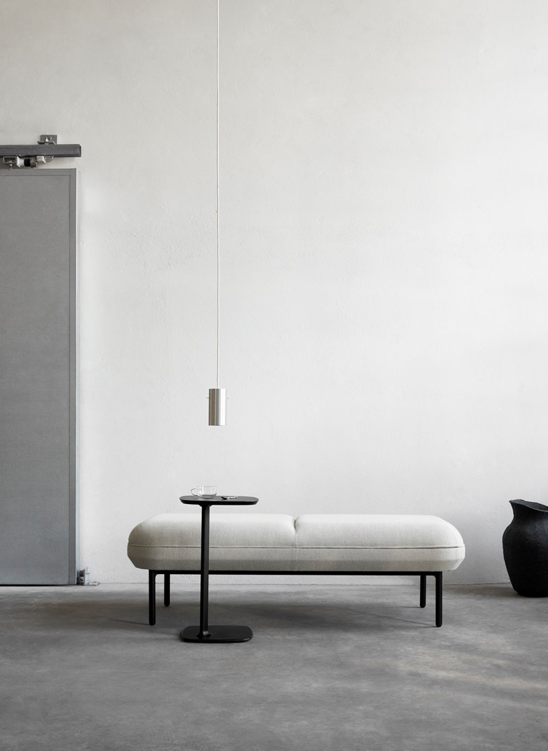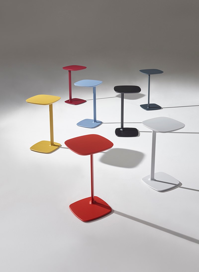 Host is a standalone table for use as a laptop support or work surface and is proportioned accordingly, with a weighted stable base and elegant column. A convenient hand grip to the underside of the edge together with side slides under the base plate allows the user to easily glide the table closer.