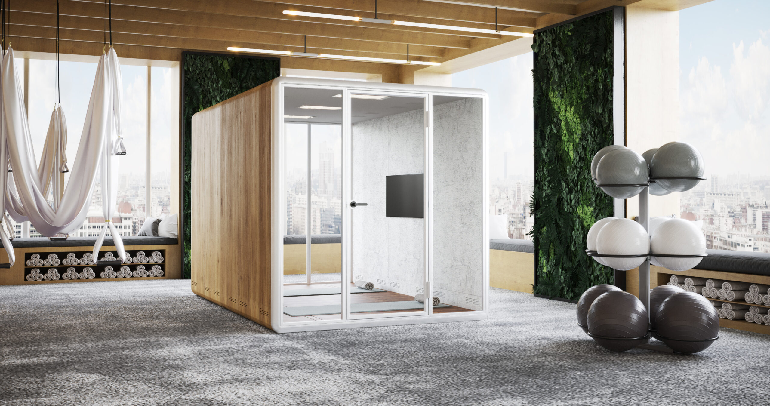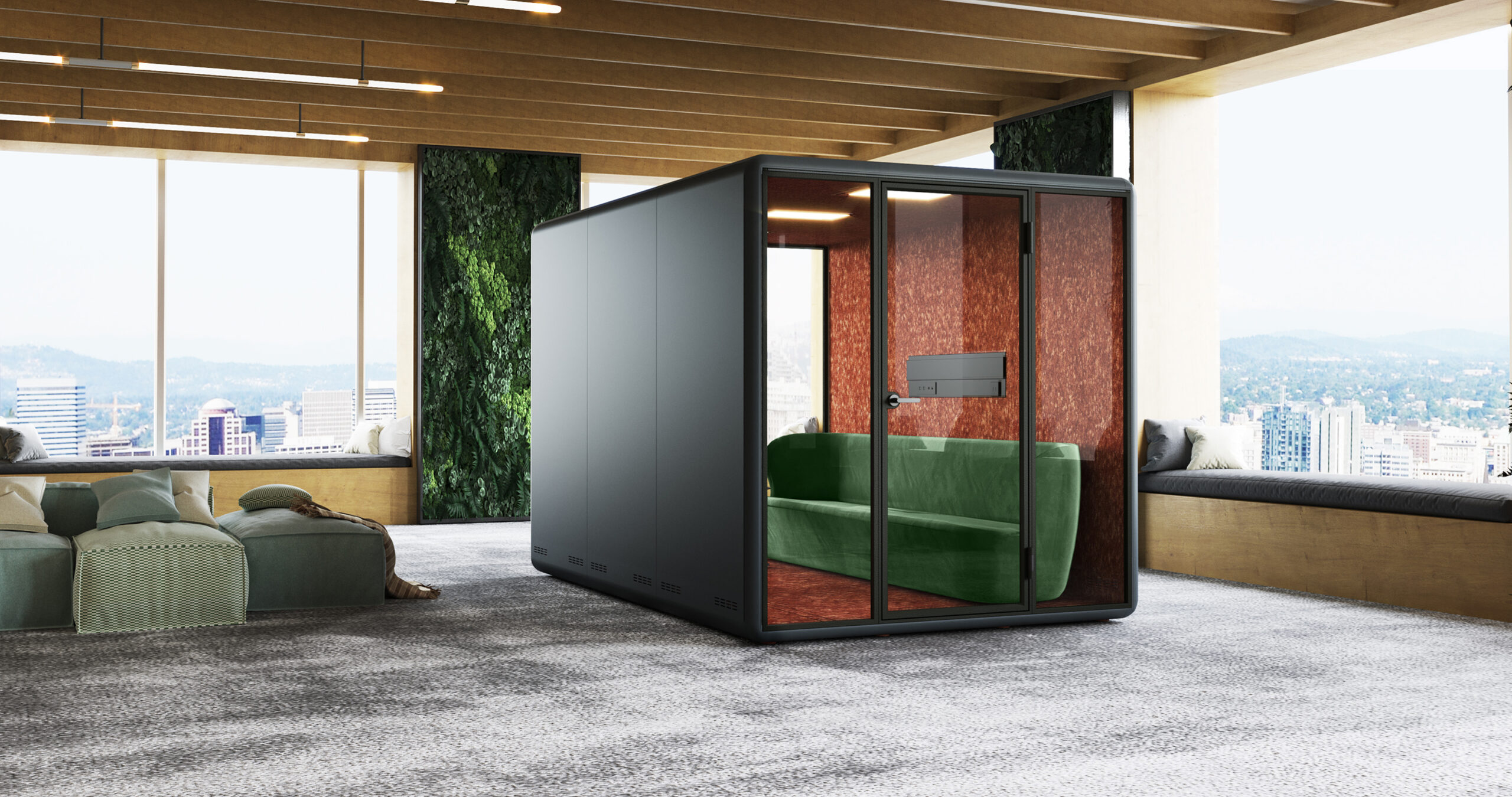 A flexible meeting room innovated for the modern open workstyle. Kolo Duo features a modular design that accommodates up to 4 people per unit. The configuration can be extended into Duo+ with two units and Duo++ with three units to provide a more formal meeting venue for up to 8 people. The space can be used as a meeting/conference room, a workstation, or a personal resting space. Kolo Duo is adaptable to any open-plan workspace to meet your needs.