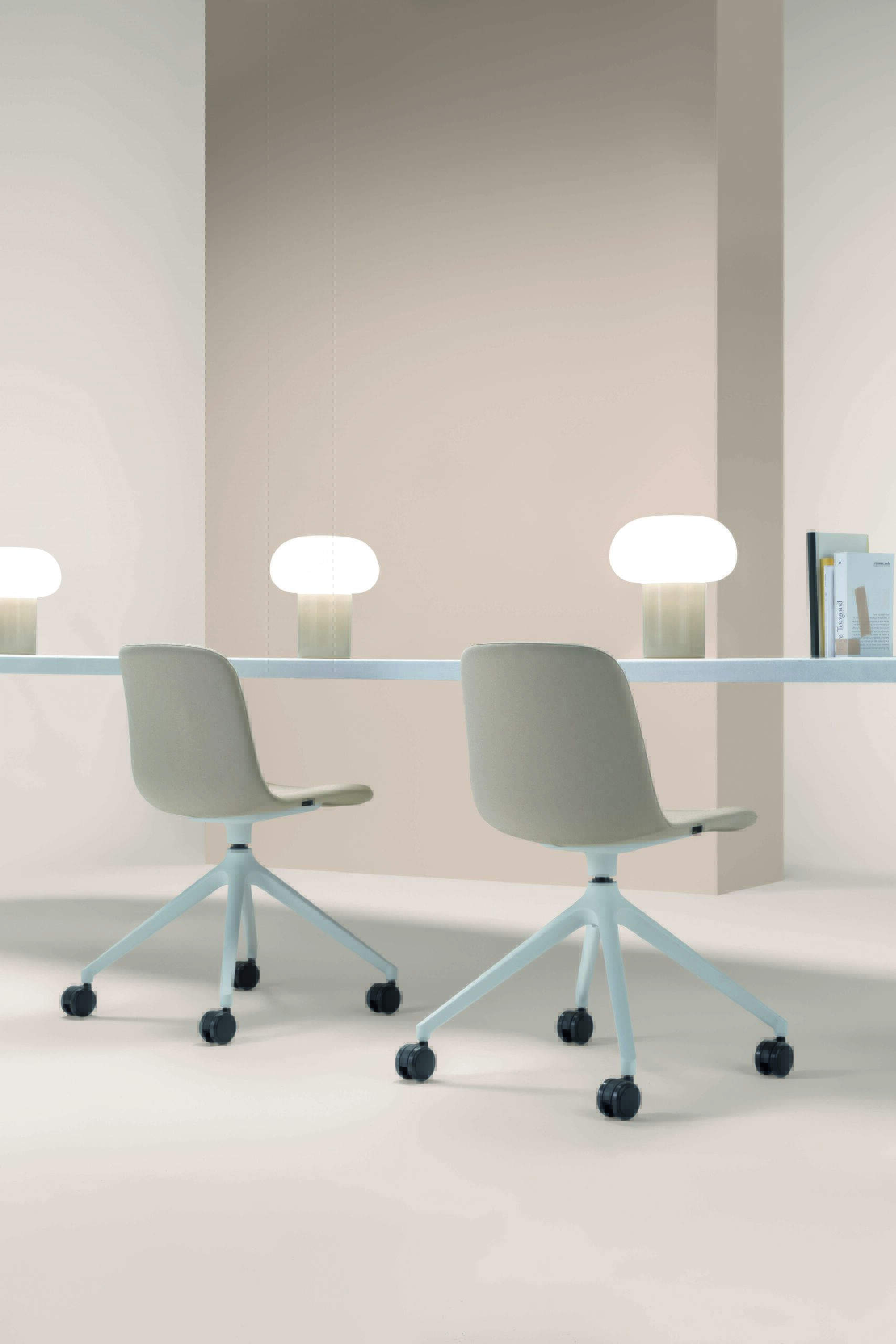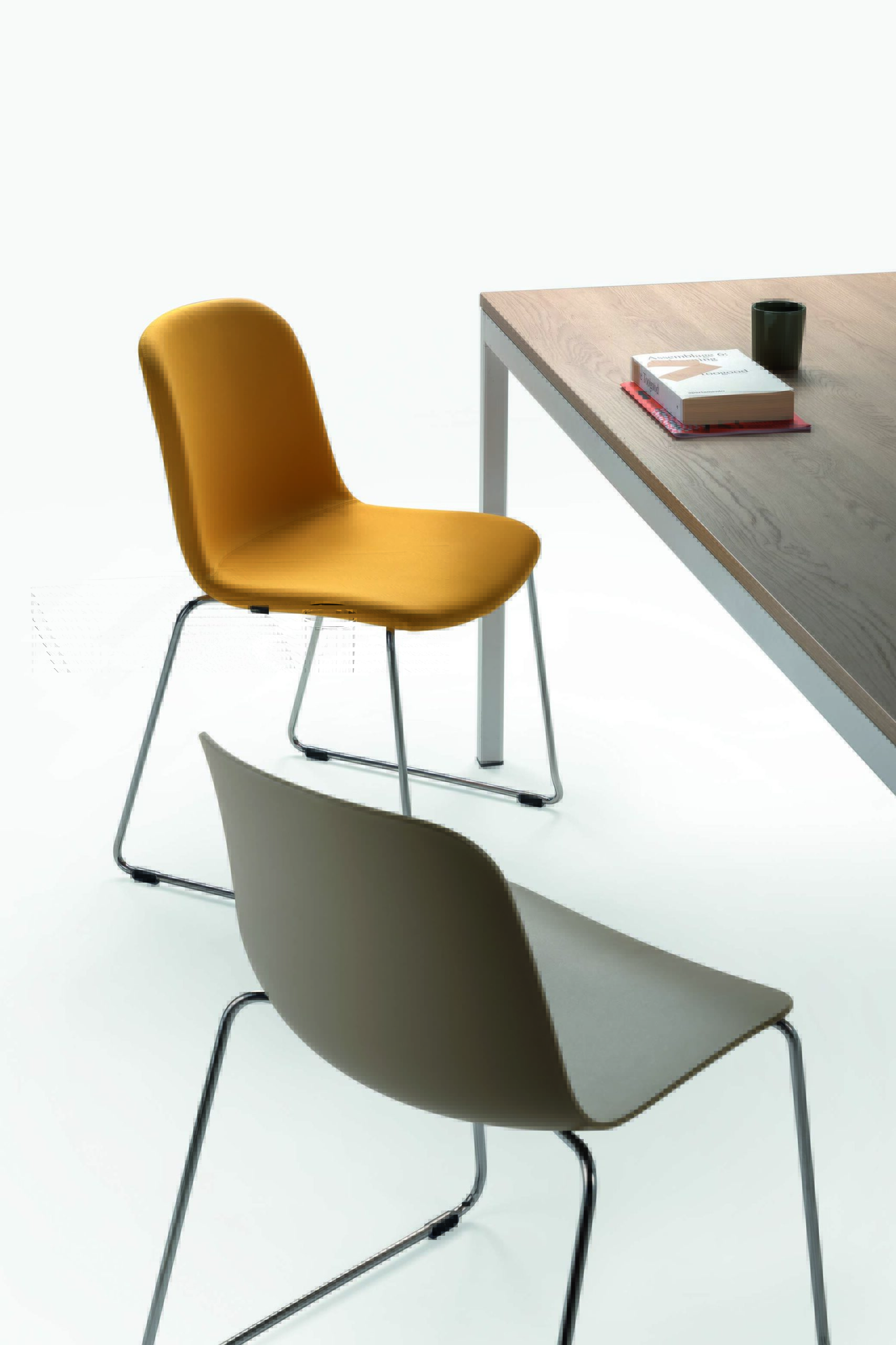 Series of multi-purpose and hospitality chairs with a wide variety of colors and combinations. The shell can be in plastic, with padded seat or completely upholstered.The base in metal, in plastic, in wood and the pivoting version allows the whole range to be inserted also in domestic environments.