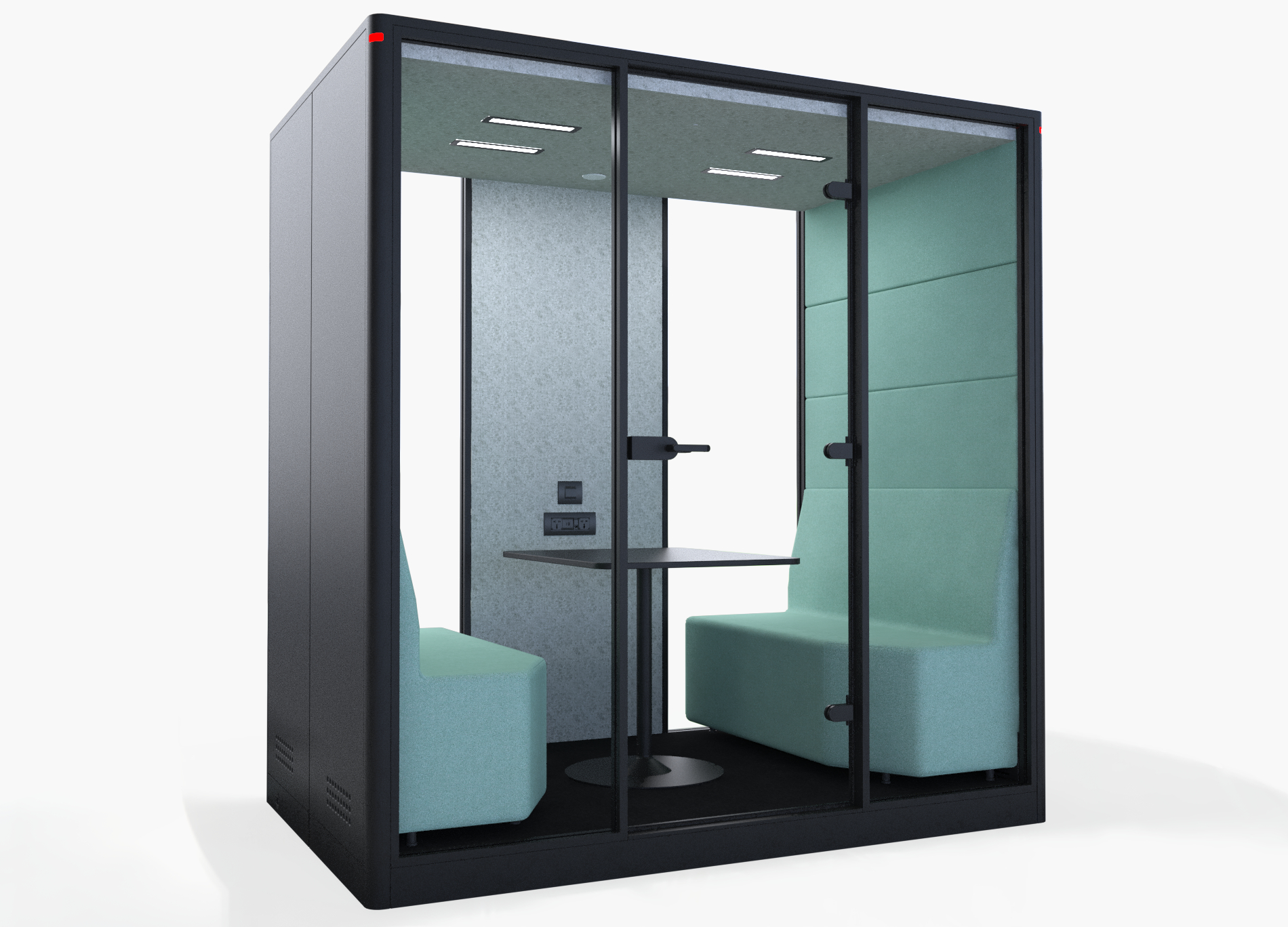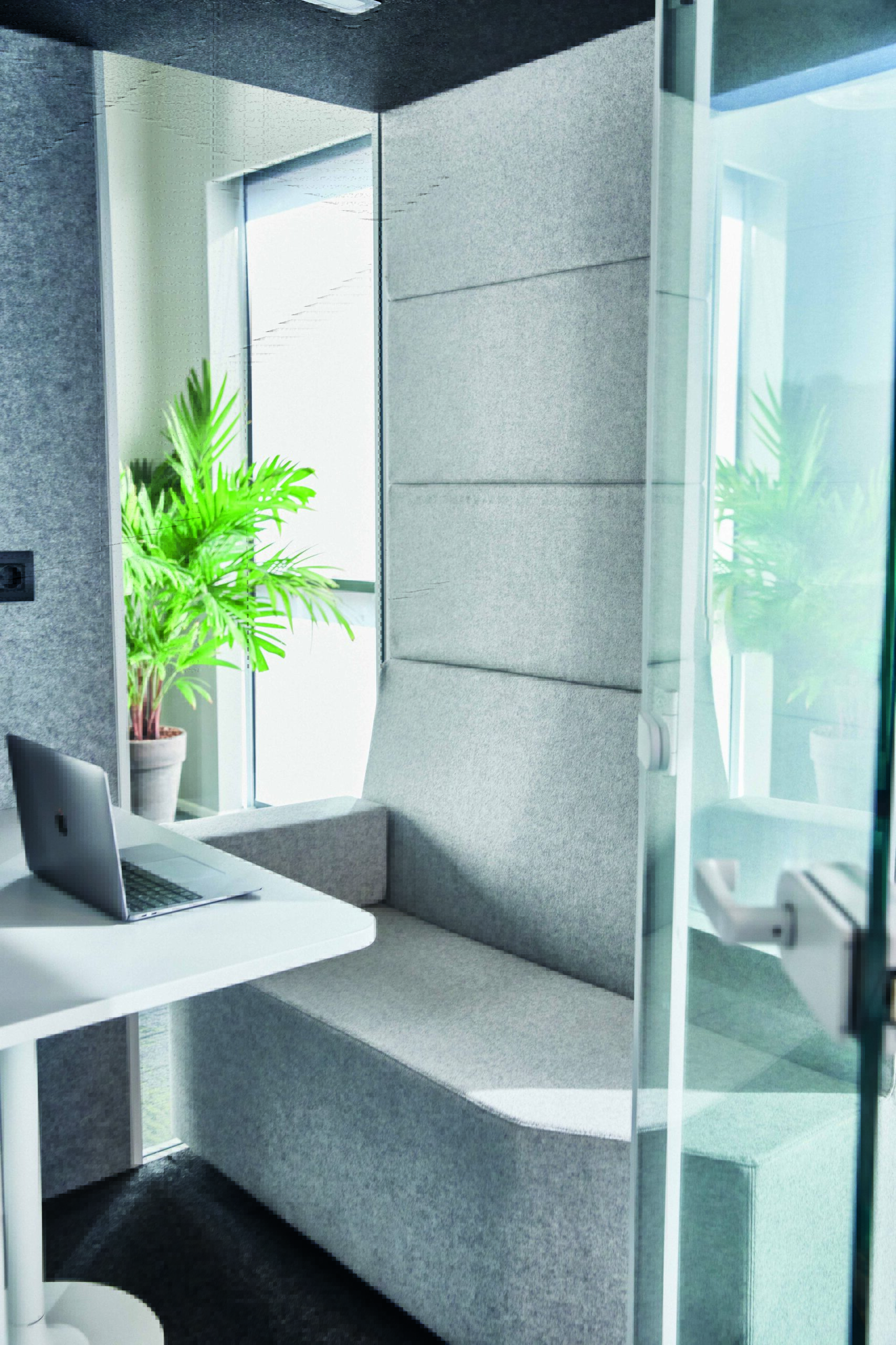 The Calma Meeting Booths are a family of acoustic booth for two to four + people, designed for comfort and privacy. Providing silence and focus in common areas such as co-working spcace, public spaces, noisy offices for example. The absorbtion level is and A Class and it has been tested in acordance with ISO 23351-1 by an accredited laboratory. Jump on a Teams or Zoom call and not worry about distubing any colleagues or being disturbed. Or have a meeting with your team or a client.