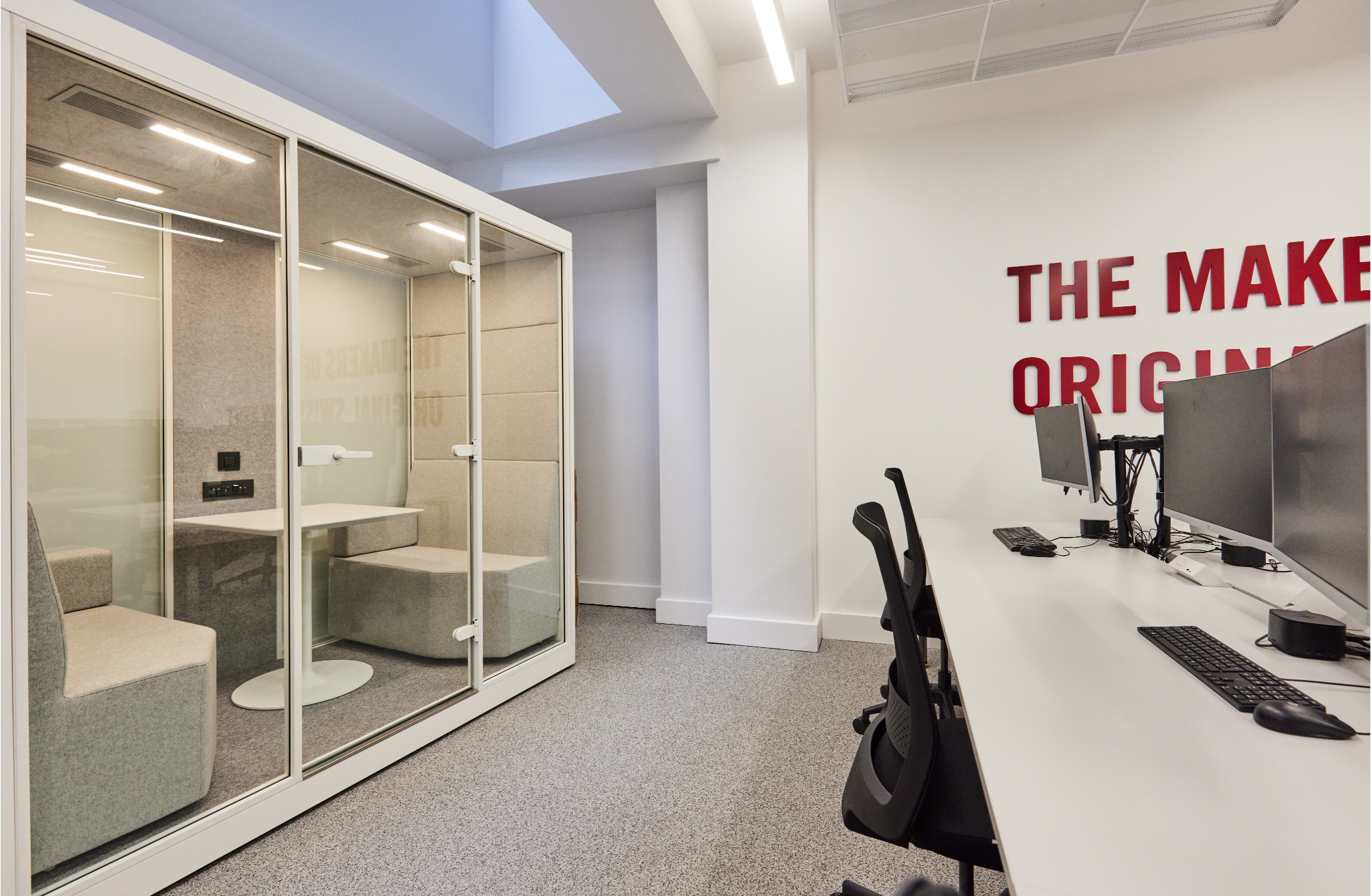We required many design led Pods and Booths with strong DB rated acoustics for confidentiality and electronic height adjustable workstations with wireless desk top fast charge. Acoustic Office provided us with a selection of options matching our requirements, offering our clients choice. These were all delivered and installed within budget and on time."