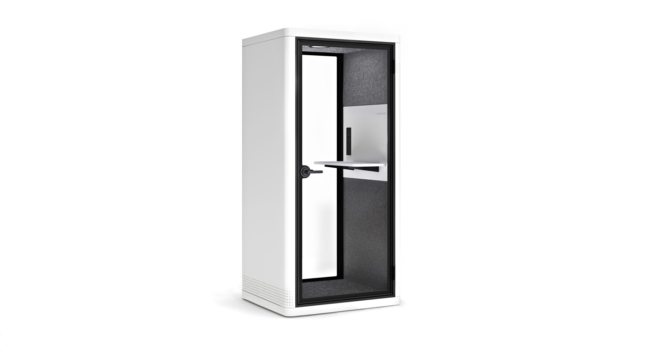 The 'Stand' variation of the Milli Pod is a purpose-built standing acoustic booth for a quick in-and-out private conversation or a short exclusive personal session