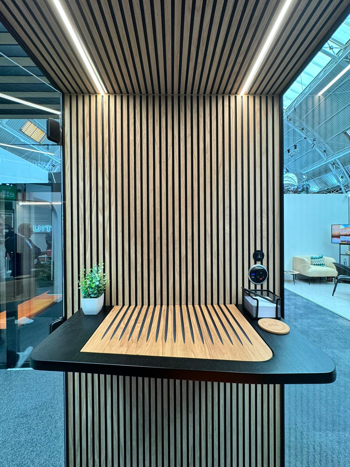 In today’s noisy open-plan working environments, our new range of highly acoustic phone and work booths provide the perfect quiet sanctuary to take those phone and video calls or get some quiet time to finish that urgent project. With high quality materials and external timber effect slats, these booths deliver a premium contemporary look and feel.