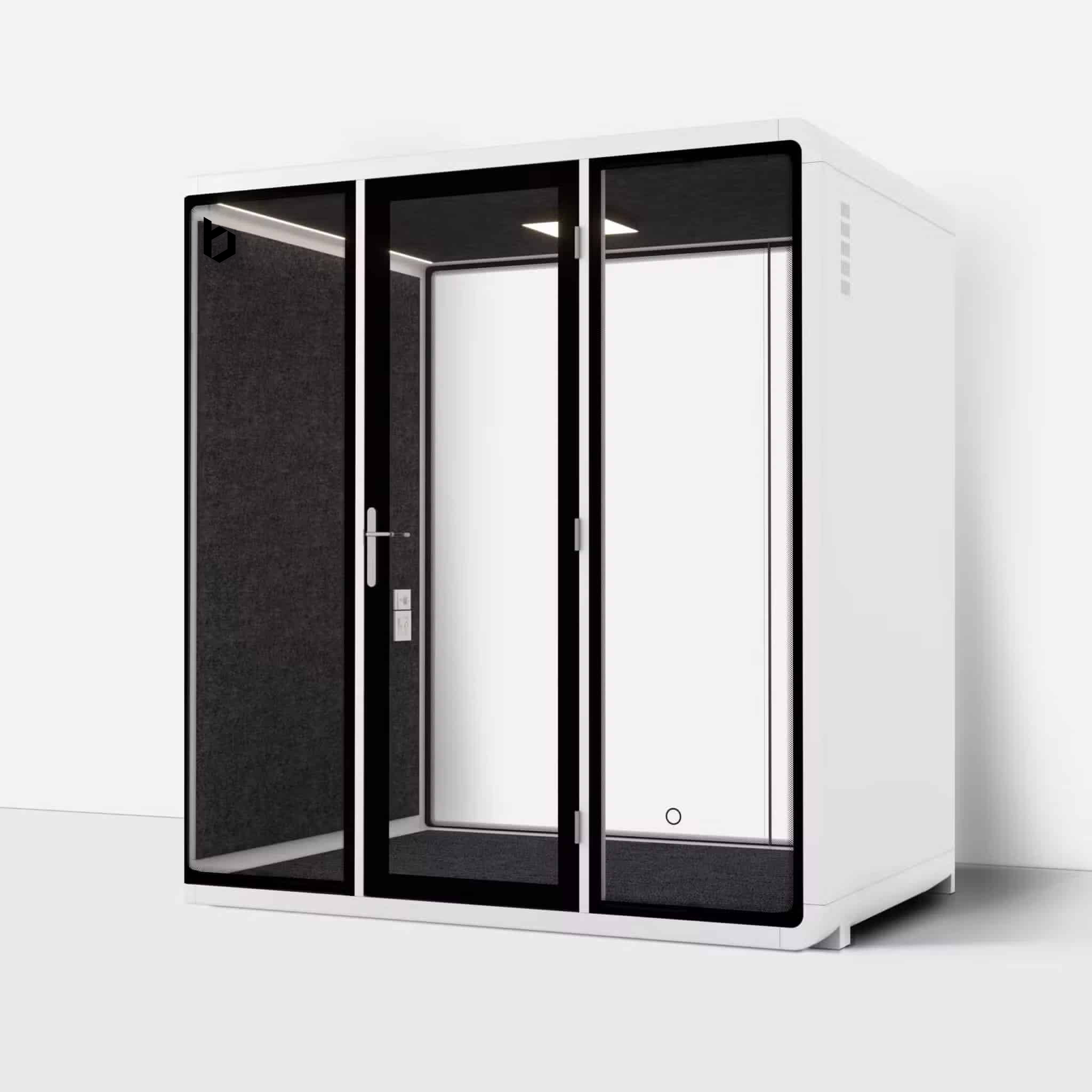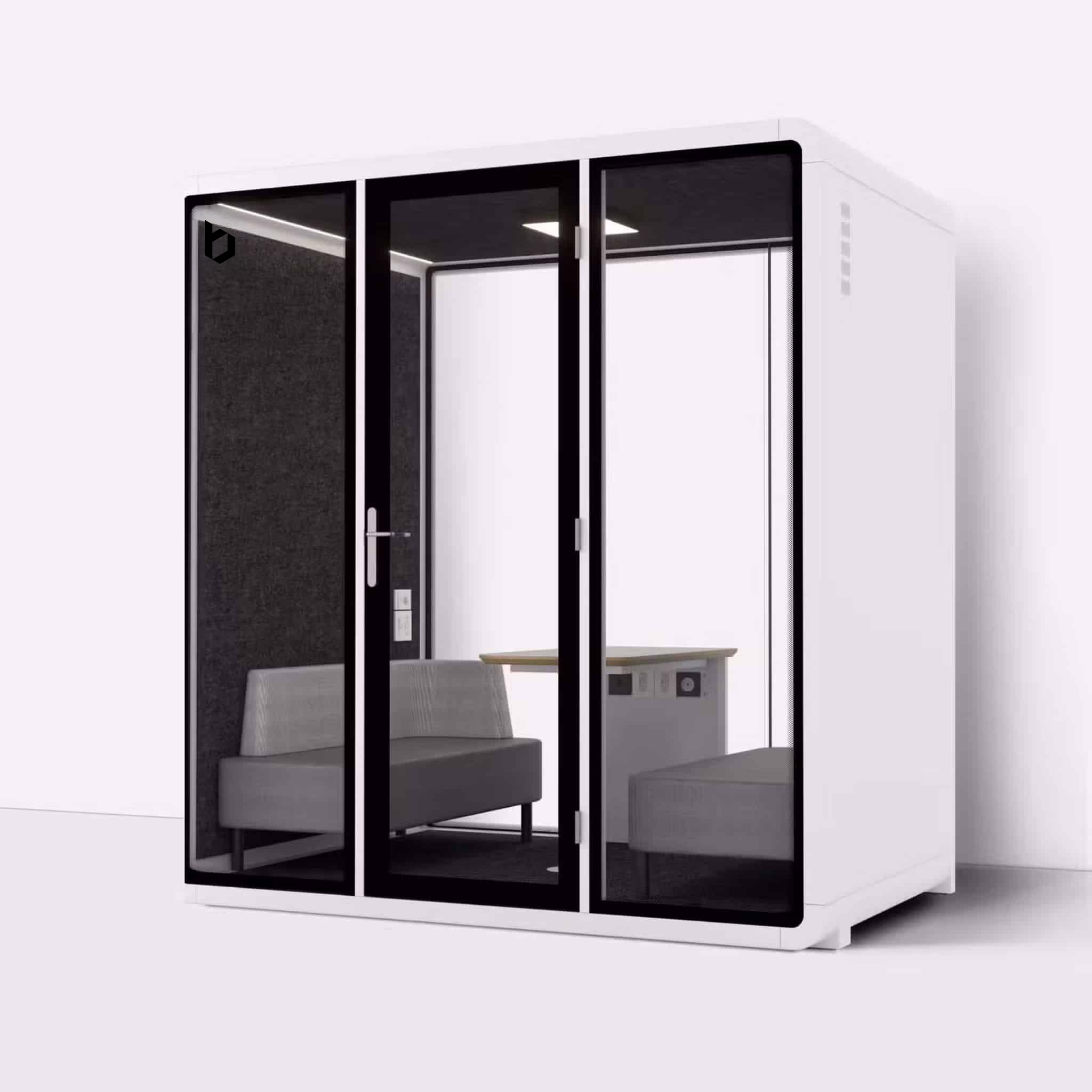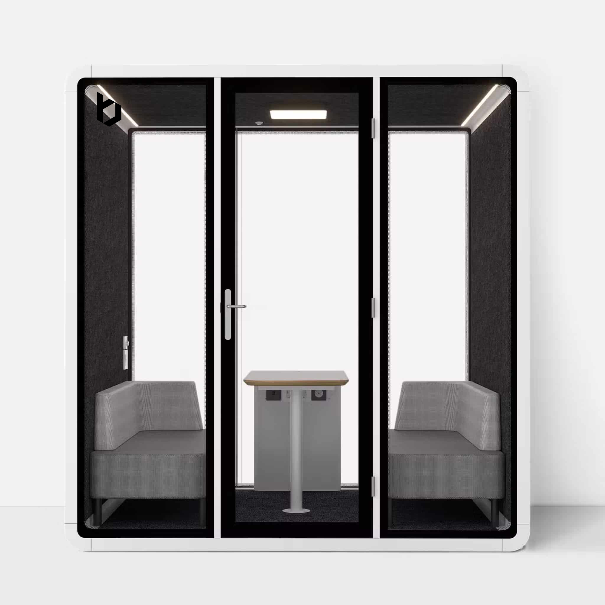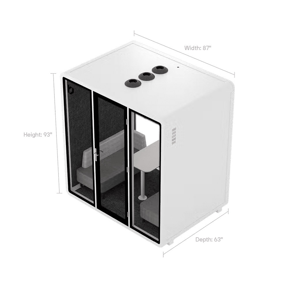 Made for distraction-free connection and collaboration, this soundproof modular office fits four people comfortably while making efficient use of a small footprint. The Quad+ can also be configured as a spacious single office by removing the included benches and table and adding the furniture of your choice.