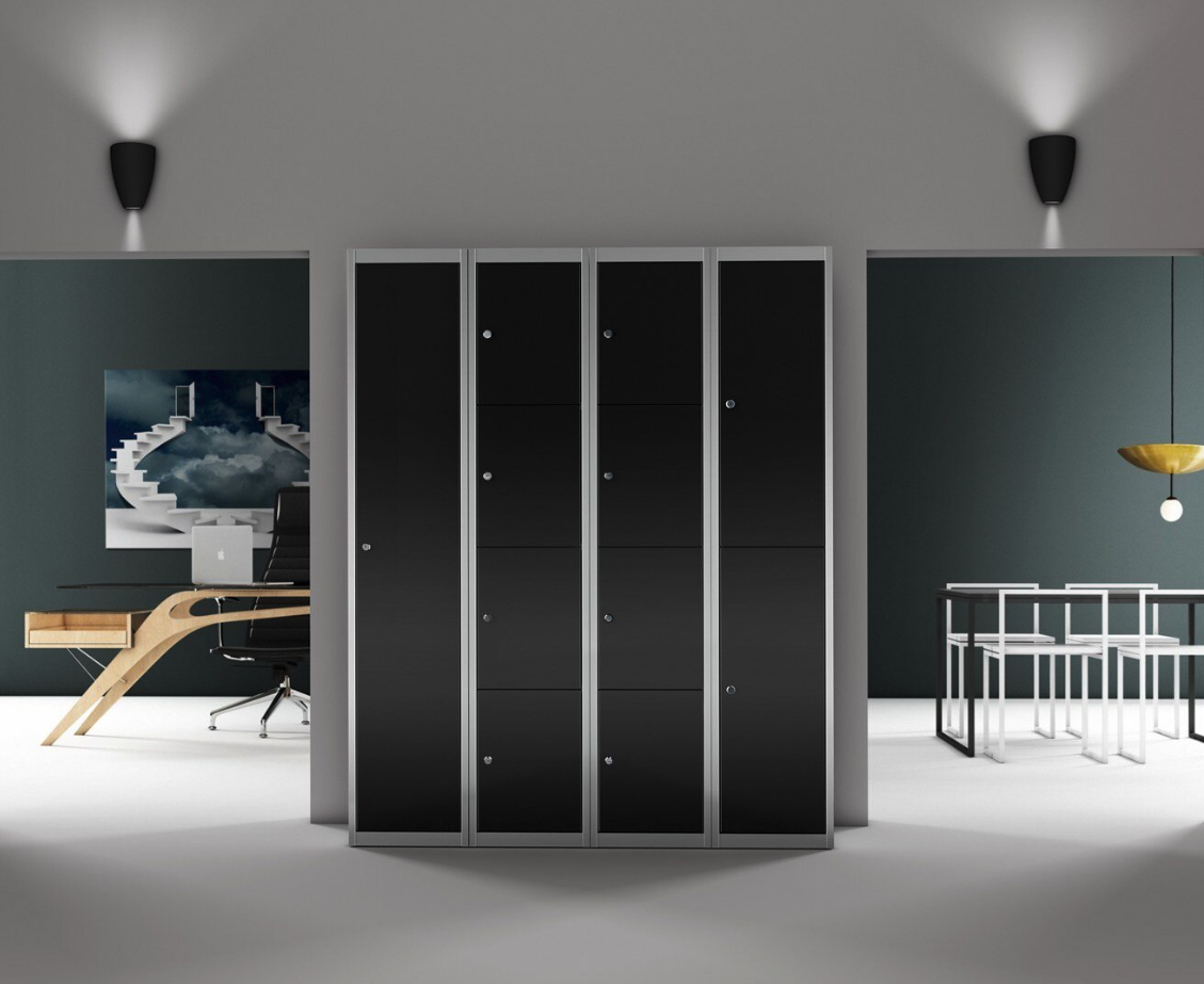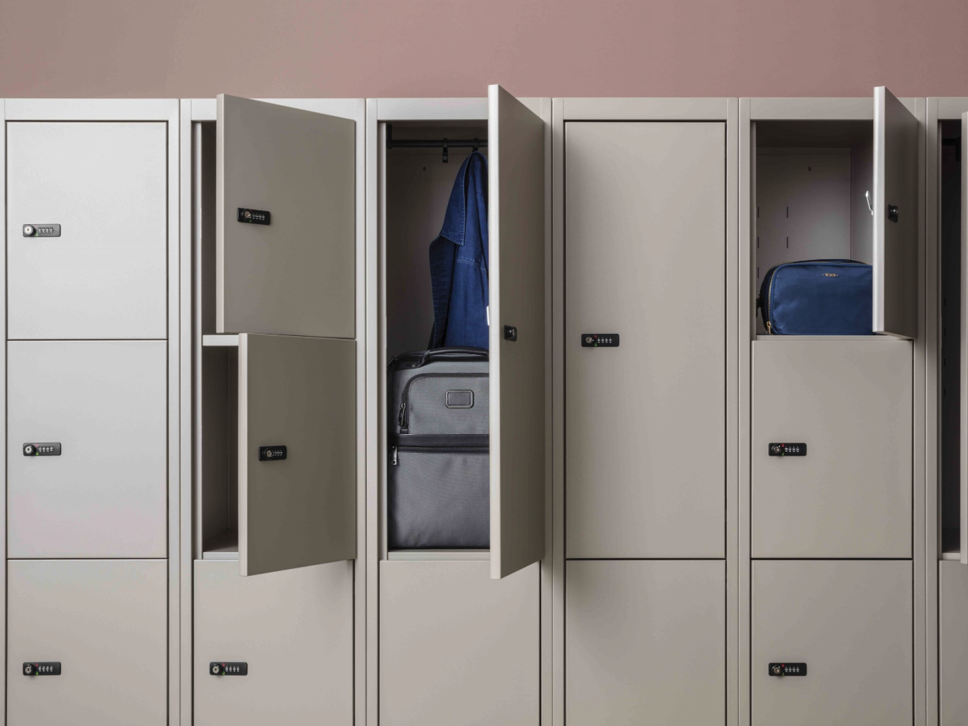 Ready Lockers is a modular program of cabinets dedicated specifically to the office environment.They are made of robust sheet metal with powder coating, and have single or multiple swing doors with locks and holes in the rear for ventilation.