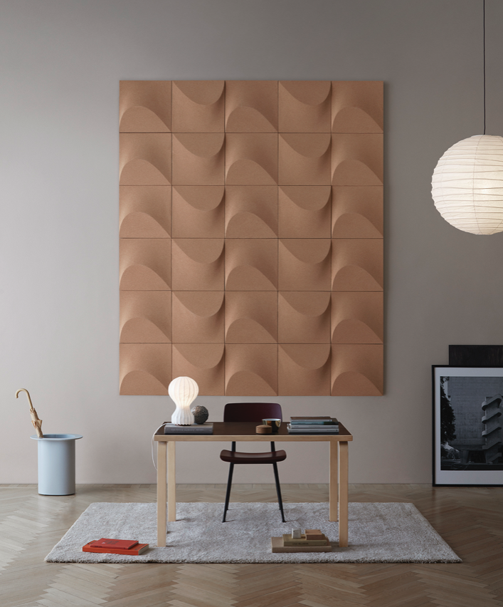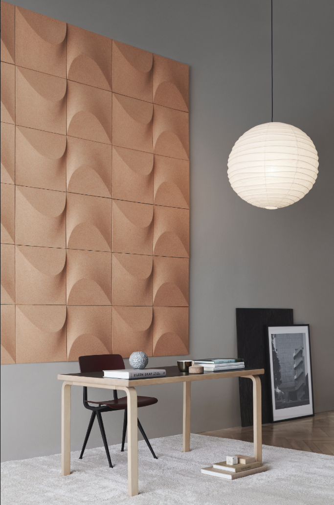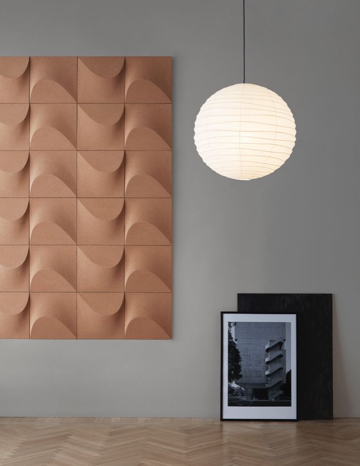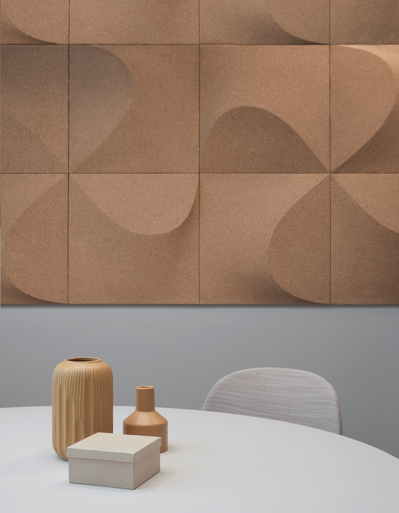 The wall panel created by Gabriel Tan is made of cork, a natural material made out of waste material from the production of wine corks at a factory in Portugal.