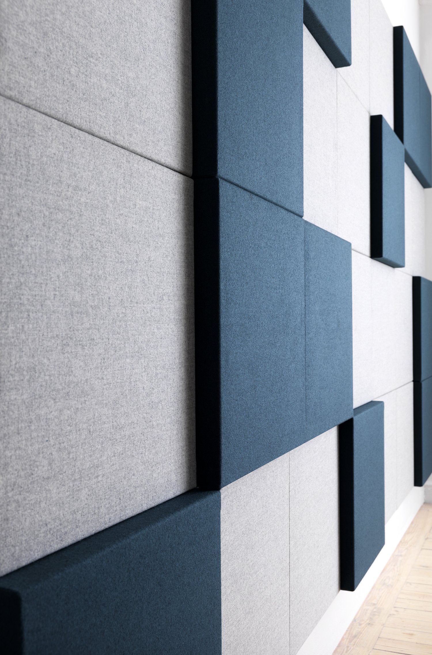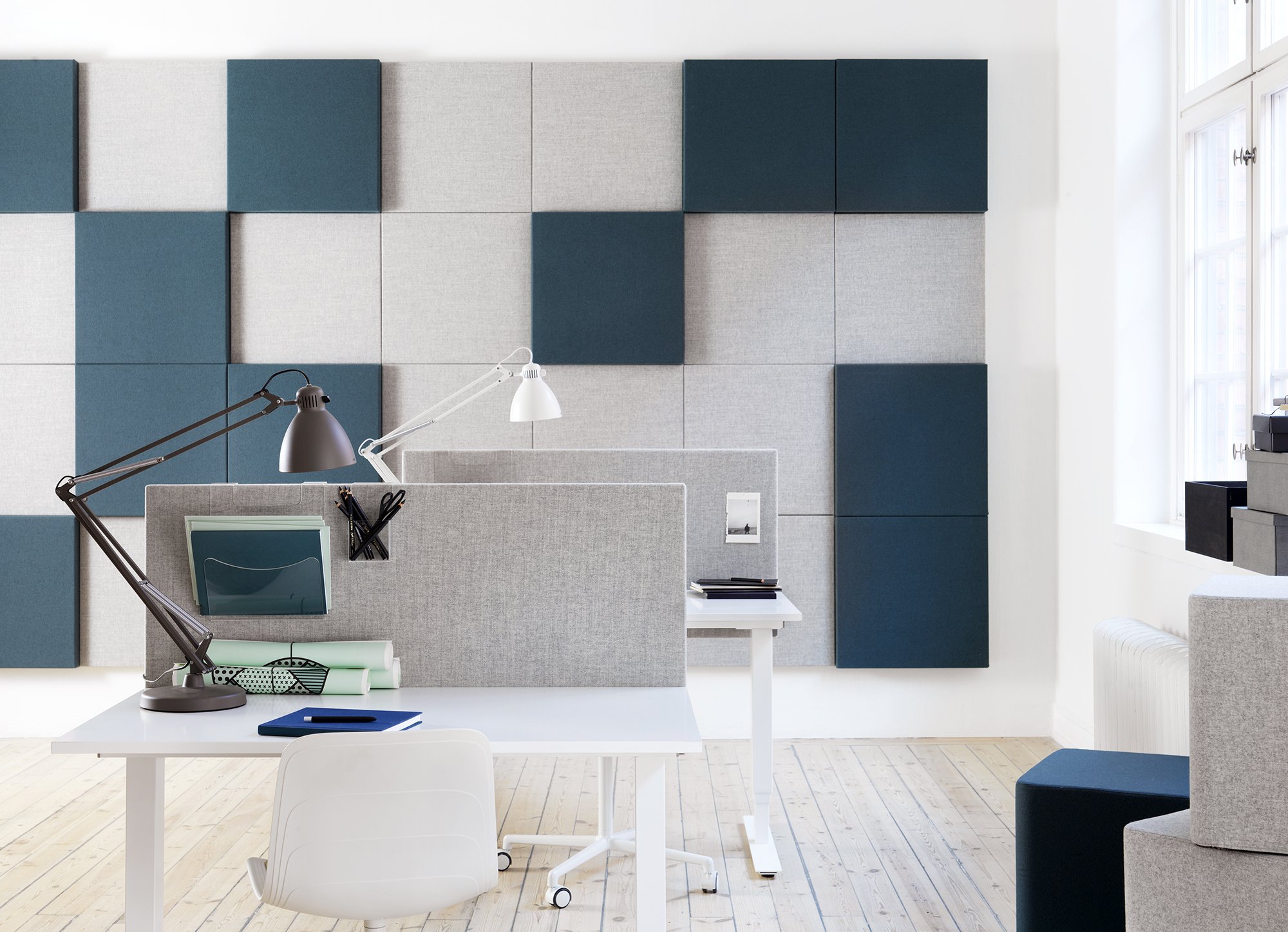 The square is the most elementary of geometric shapes. Yet despite its simplicity, its dynamic potential is limitless. Soneo Wall, a versatile system of sound-absorbent square panels, makes this particularly apparent. The panels can be freely arranged into different patterns and upholstered in a multitude of fabrics and colours. They are also available in two thicknesses, which can be combined to create even more dynamic patterns.
