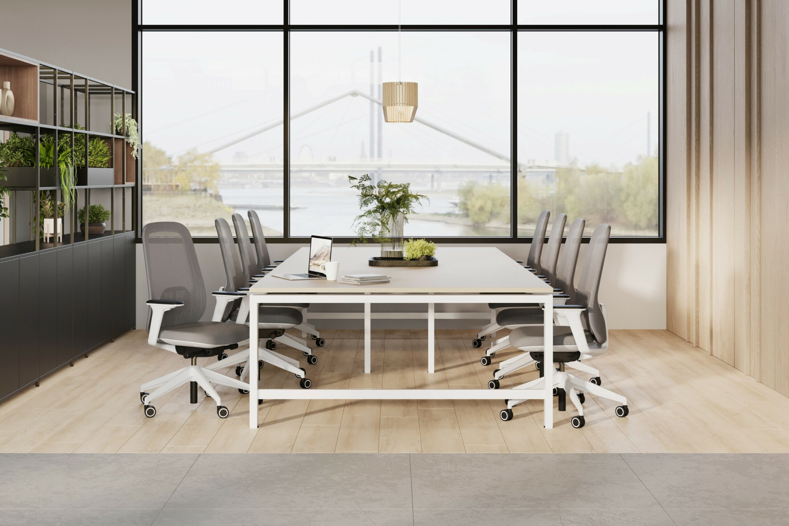 Meeting tables designed for an environment where every square foot of office usage is scrutinised, and every component functionally necessary and aesthetically considered.