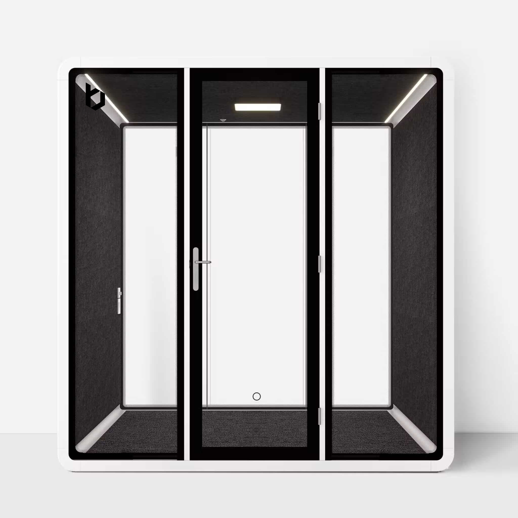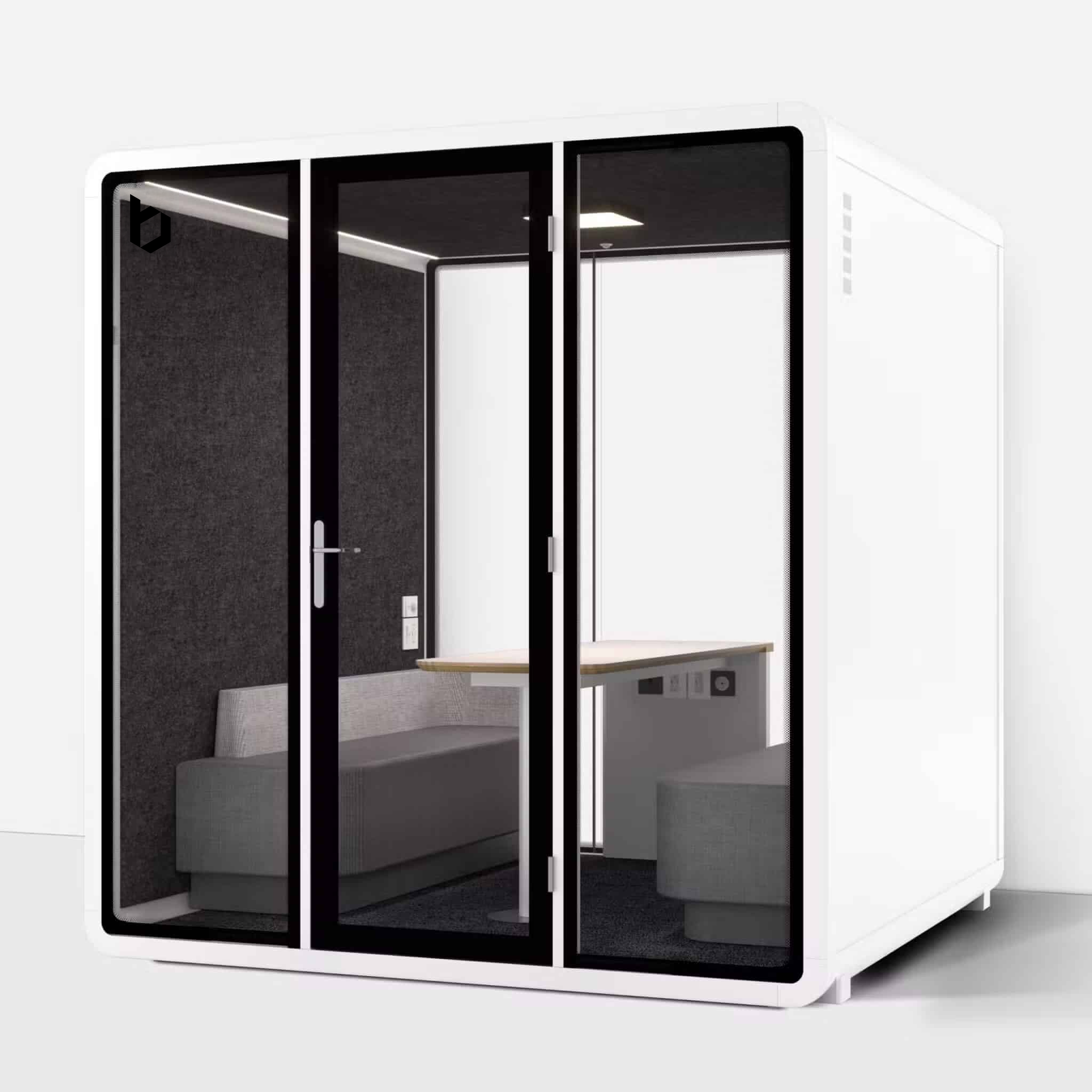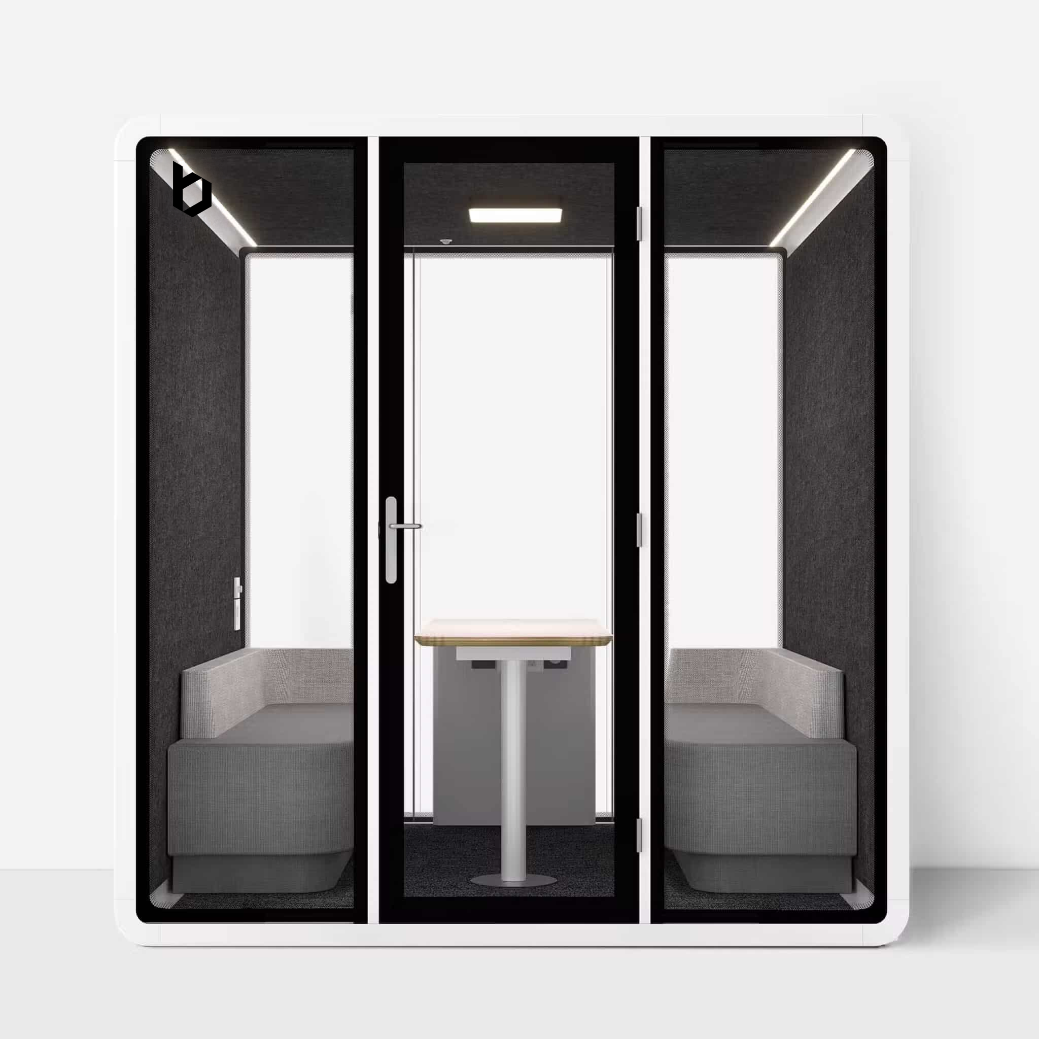 Our most flexible modular office room, the Bureau Team offers multiple configuration options that easily adjust to changing needs. The Team fits six people comfortably, allowing for deeper connection and collaboration thanks to its impressive soundproofing. Reimagine it as a single or double office by removing the included benches and table and adding the furniture of your choice.