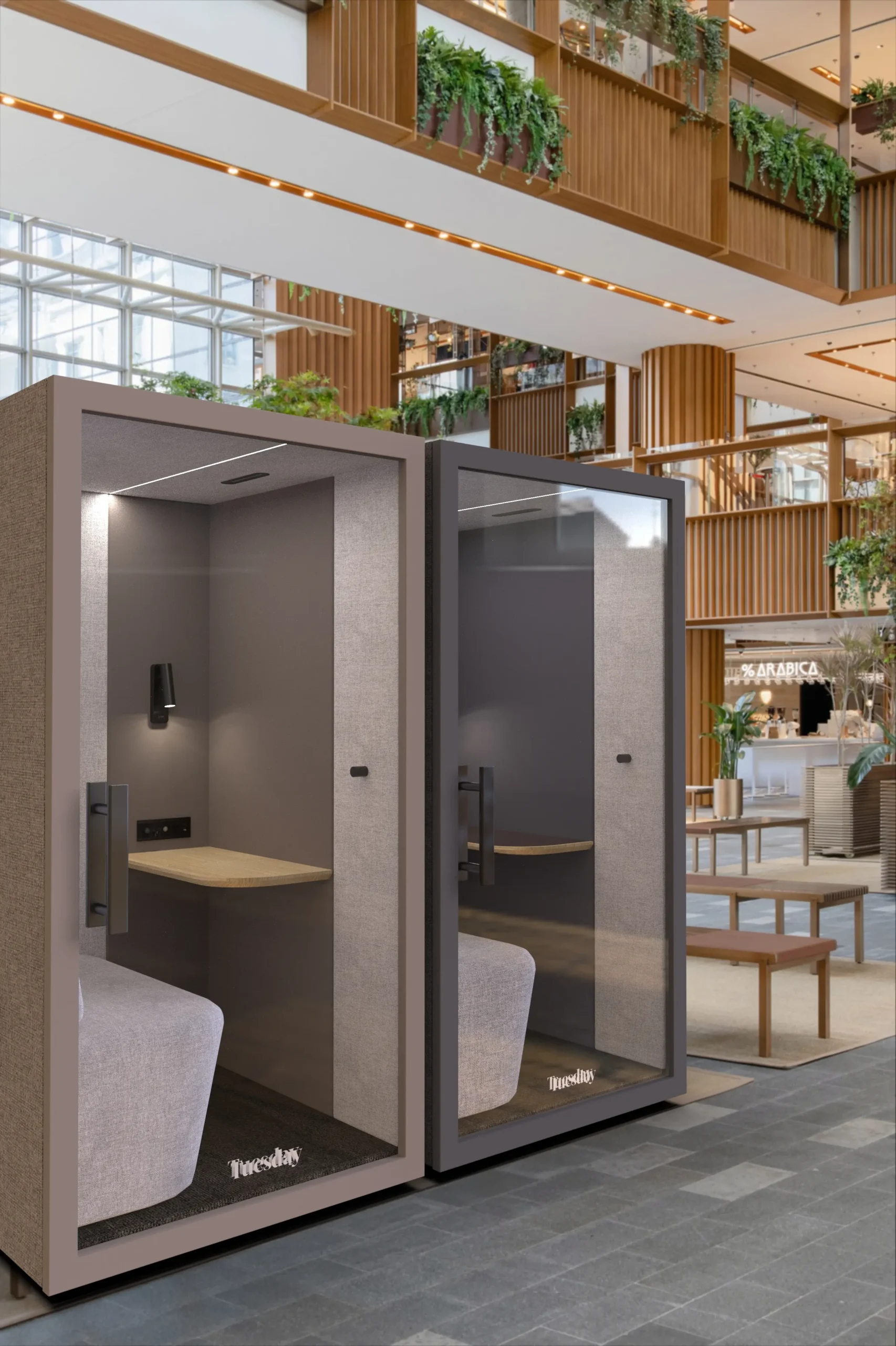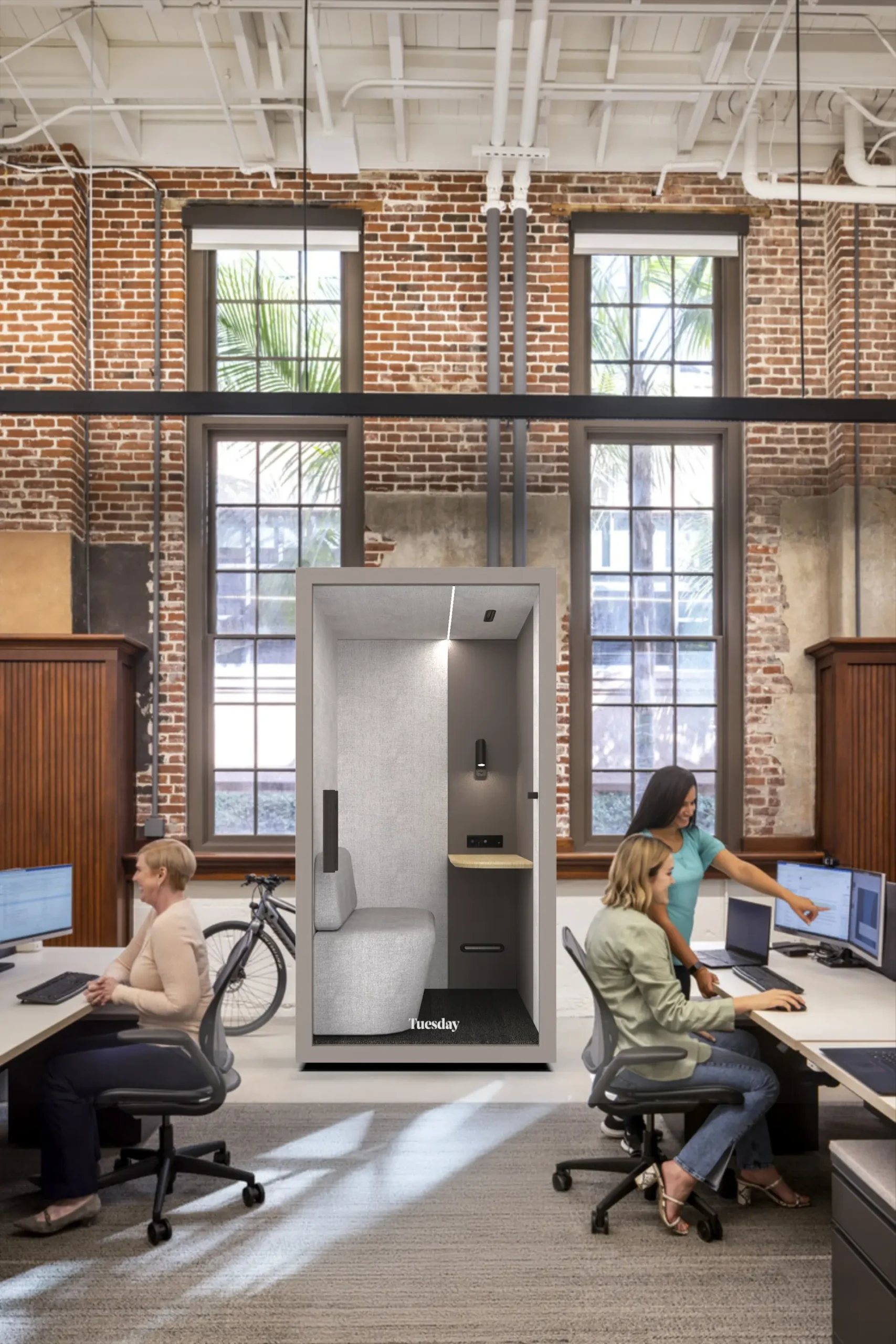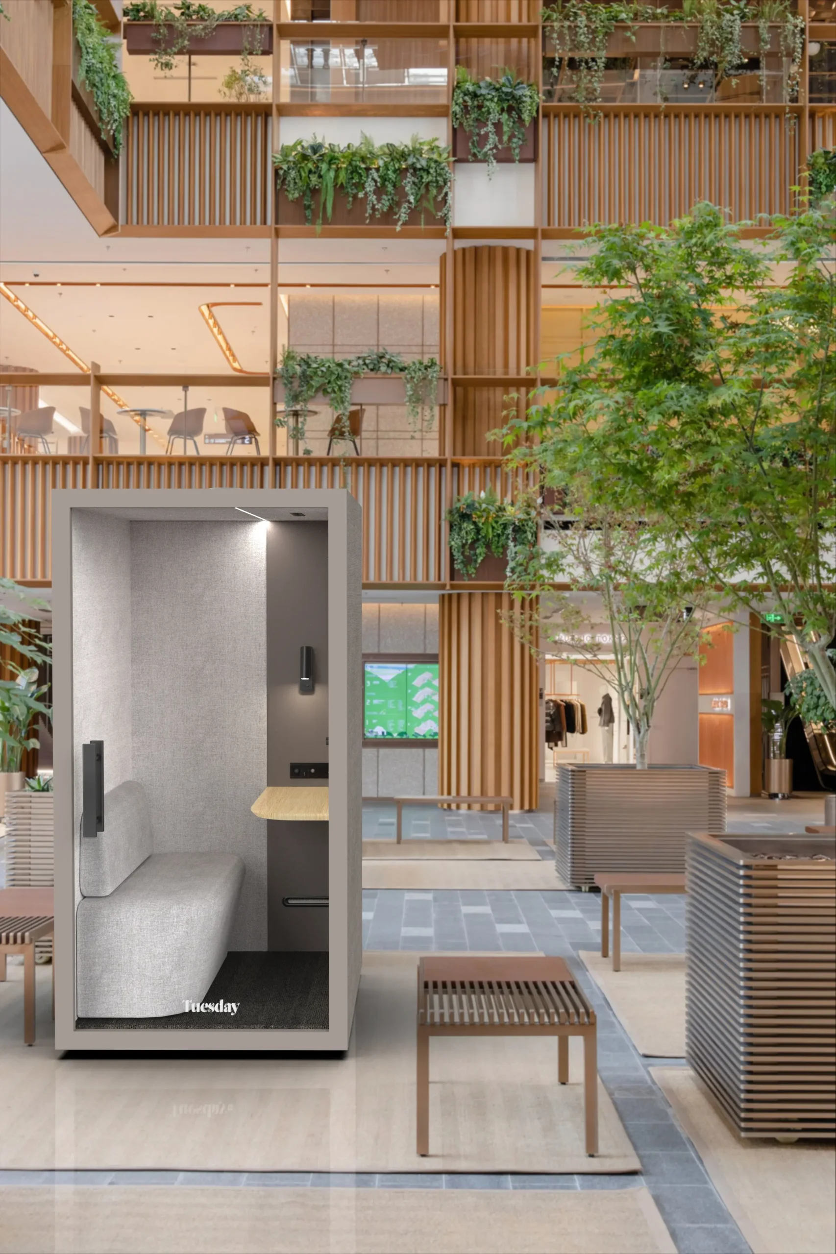 • Our Tuesday reduces external noise by 30+ decibels – top-tier for soundproof office pods. Your conversations stay private and outside distractions fade away, letting you focus on deep and productive work.